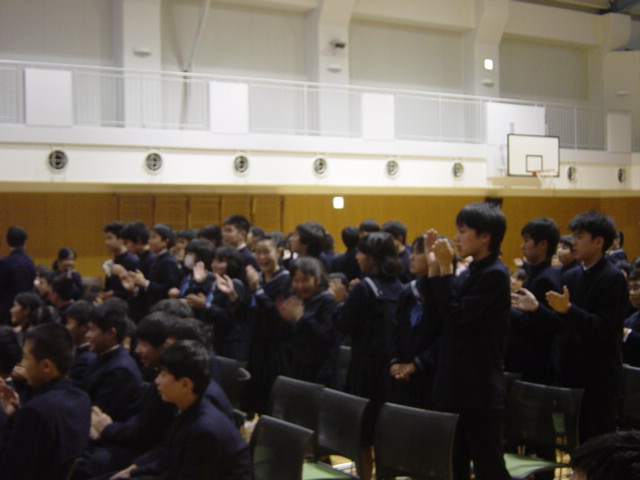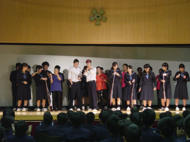 創立記念式典が終わったあと、生徒だけの企画であるオープニングステージがありました。有志によるステージ発表があり、生徒一同大盛り上がりでテンションもあがり、立ち上がって声援をおくる様子も見られました。