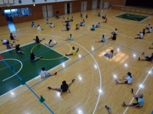 熱中症対策の一環から、冷暖房完備の涼しい体育館でトレーニングを行い、最後は毎回恒例の50m走のタイム測定!!