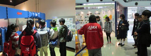 今回の見学先はJAXA調布航空宇宙センターです。5~6名の生徒に対して1名の職員の方がつき、研究内容や展示物について詳しく説明を行ってくださいました。生徒達は超音速旅客機の模型やその実験の成果に興味津々の様子でした。また、月への往復をシュミレーターで体験する装置には、大いに盛り上がっていました。