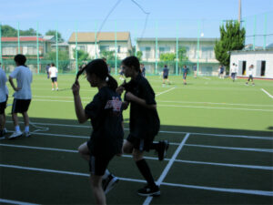 いよいよ来週に迫るスポーツ大会に向け、生徒たちは朝の始業前・昼休みの時間を使って自主的に練習に取り組んでいます。1年生にとっては初めてのスポーツ大会ですが、AB組・CDE組ペアでの縄跳び練習や学年種目、リレーなど、各チームやる気に満ちた様子で日々頑張っています!