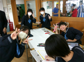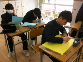 学園祭に向けて、3年AB組は準備に励んでいます。模擬店ののぼりや装飾を手作りし、華やかに彩るためアイデアを考えています。また、写真映えするフォトスポットを制作するチームもあり、来場者が楽しめる企画も準備中です。それぞれのチームで協力しながら、思い出に残る学園祭をつくり上げています。