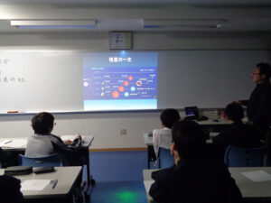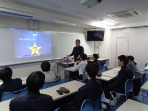 本校では理科探求のための自由参加型のイベントとして「ふれあい天文学」という企画を行っています。今回は,国立天文台副台長の吉田先生をお招きし,講義が行われました。テーマは「恒星」で恒星の一生や特徴について興味深いお話しを聴くことができました。生徒からは,「惑星が公転するためのエネルギーは何ですか」という質問が出て,先生が感心される場面も。また,先生からは「重い恒星は中心で鉄ができたら爆発する」など授業では学習しないようなお話もあり,有意義な時間を過ごすことができました。