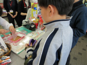 学園祭の劇を通して、ゆっくり、はっきり、相手に伝わる声で話すことを練習してきましたが、初対面の方にお話しすることに、とても緊張してしまった生徒も多くいたようで、うまく伝わらなかったケースもありました。緊張のあまり支払いの時にあわててしまったり、普段はきちんと言える「ありがとうございます」を忘れてしまったり… これからの課題も多く見つかった体験授業でした。