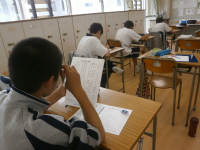 2年生では、「福祉」についての学習を進めています。今回は、視覚に障害のある方々が触って読む点字について理解を深めました。 まずは、点字の6つの点の並び方や決まりを確認したうえで、実際の文章を読むことに挑戦しました。点字の五十音表に照らし合わせて、目で確認すること、さらに点字を指で触って コミュニケーションすることの難しさを実感したようです。