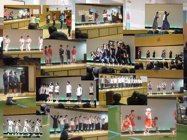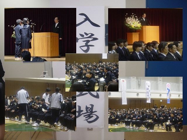 開式となり、校長式辞、新入生代表2人による誓いのことば、祝辞、担任紹介、後援会会長挨拶と続き閉式、終了後には友愛会主催の「新入生歓迎会」が催されました。友愛会会長、副会長の挨拶を合図に在校生全員の「おめでとう」の言葉と、各部活の生徒が描いたお祝いの「垂れ幕」でオープニング。先輩達の手作りによる「新入生ガイダンスブック」が一人ひとりに配られ、学校生活や行事などについて寸劇つきで説明がありました。また各部活による「部活紹介」では、素晴しい演技、ユーモアの利いたパフォーマンスが連発し、笑いあり拍手あり緊張していた新入生の表情もぐっと和らいできました。新1年生が退場して会も終了、明日からいよいよスタートです。充実した中学校生活にしていきましょう。
