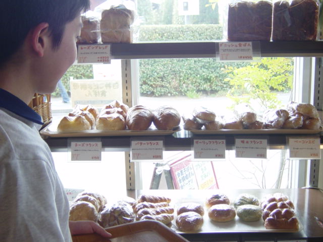 今年度の体験は、実生活に必要な内容(買い物、公共施設の利用、ファーストフード店の利用など)を行います。 今年の目標はお店や公共施設などでの対話(コミュニケーション)力を伸ばすことです。今回は近隣にあるパン屋さんに行き会話のやり取りをしながらそれぞれ好きなパンを買ってきました。