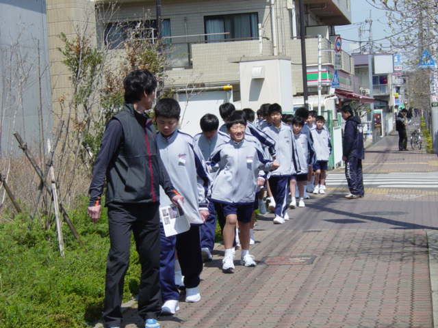 体験では2時間続きの授業で、実生活に必要な内容をCDE組合同で行います。買い物、公共施設(図書館、郵便局、プールなど)を利用することで公共の場でのルールやマナーを学ぶことが目標です。1回目の今回は学校から東小金井駅までの通学路を確認しました。