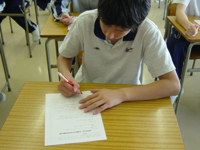 今週の生命科では、中学を卒業してすぐに社会に出て働くことになった2人のドキュメンタリー番組(後半)を視聴しました。仕事の厳しさを痛感し、1度は諦めかけたそば屋の仕事ですが、社長や家族の励ましから、再度挑戦しようと決意します。彼らの一生懸命な姿を見て、働く意味、そしてその厳しさを改めて考え、将来観のまとめとしました。来週からは平和、死生観をテーマに進めていきます。