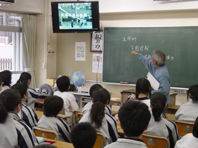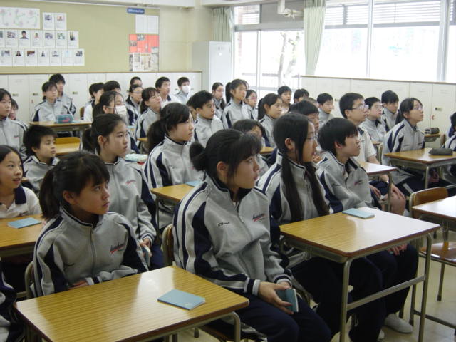 今日の生命科では『学園理解①』として、新堂教頭より武蔵野東学園の歴史や創立者の思い、生活療法や混合教育などについて講話がありました。各園校開校時の記録映像をもとに、創立者の人柄や当時のエピソードなどの話に、生徒たちは真剣な表情で聞き入っていました。武蔵野東学園の混合教育ではAB組の存在がとても重要な役割を果たしているという話を聞き、これからの学校生活での励みとなったようです。