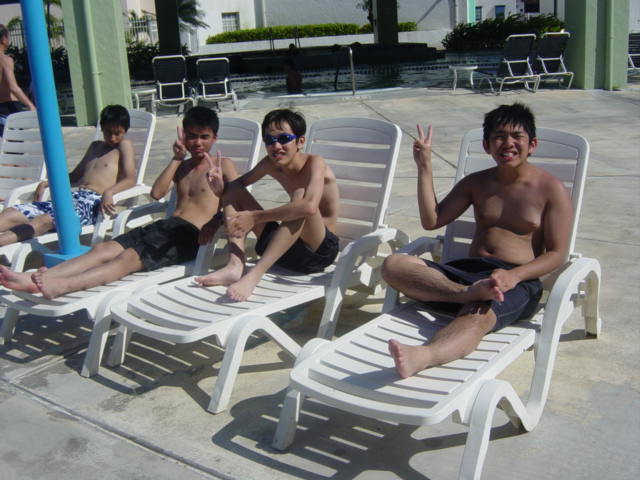 今日は皆が待ちに待ったプールの日です。天気は快晴。誰もがグアムが始まる前に話題にしていたマンタをはじめ流れるプール、ウォータースライダー、波のプール、ジャグジー、水中バレーなど多彩でした。マンタは10回くらい乗った人もたくさんいます。私もその一人です。現地の人からは「アリガトウネ」と言われビックリしたけど声かけてもらうと嬉しかったです。