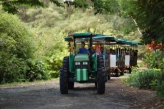 園内トラムに乗って | フルーツの試食 | ココナッツキャンディー作りに挑戦 | |