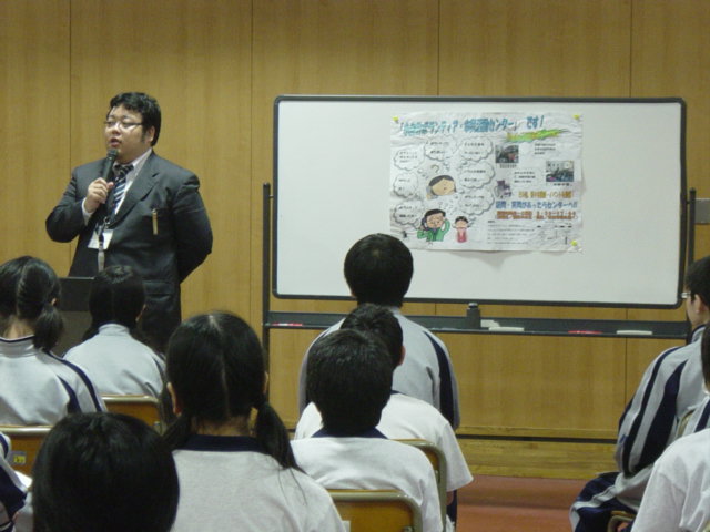 これまで2年生の生命科では「福祉」を大きなテーマとして取り上げ、震災におけるボランティア活動をさまざまな視点から学ぶことで多くの「気づき」を得ています。今回は小金井ボランティア・市民活動センターの方に来ていただき、ボランティアの基礎から現場での様子まで幅広い内容の講演をしていただきました。ボランティアについて、自分たちが感じていたことと今日のお話とを結び付けて考えを深める良い機会でした。