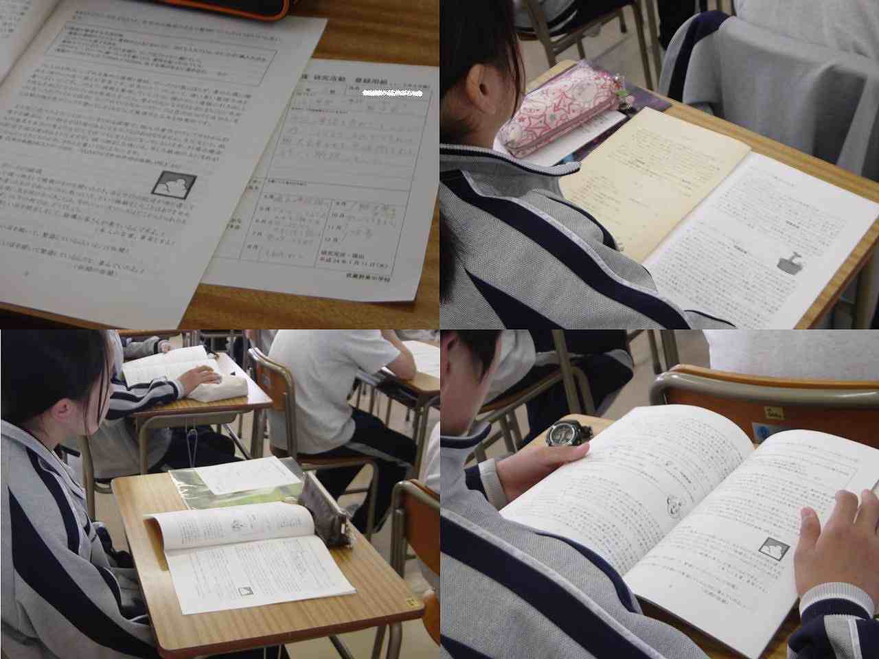 2年生AB組は研究活動のテーマが全員決定し、いよいよ本格的に研究を進めていくことになります。今日は各クラスで前回配布した『研究活動の手引』を熟読しながら、これからの大まかな活動予定を立てていきました。それぞれの活動に必要な作業をどの時期に行っていくのがよいか、資料を収集し、それを整理していくのに必要な時間をどのように確保していくか、といったことを考えながら進めています。