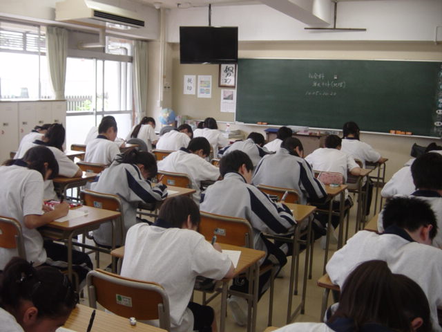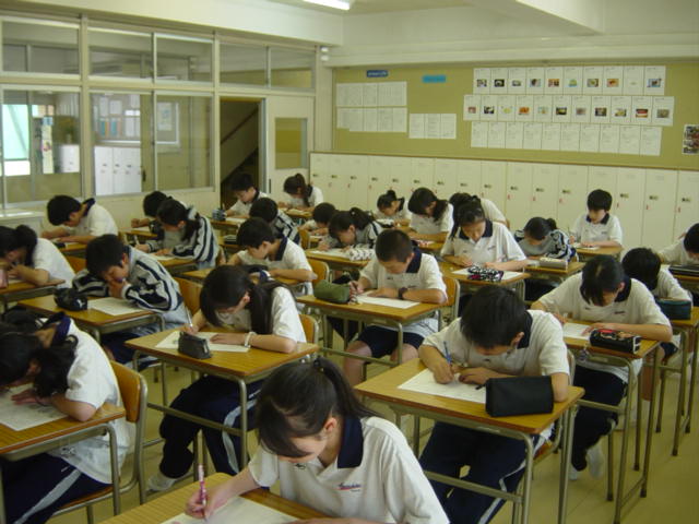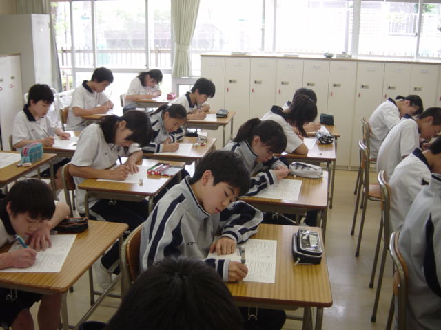 今日の授業では地球のすがた・日本のすがたについての単元テスト(地理)を行いました。これは三大洋五大陸の名称やアジアの地域名、日本の領域などについて基本的な内容を確認するものです。生徒たちの自主学習量も増加してきていますので、中間テストでの成果を期待しています。