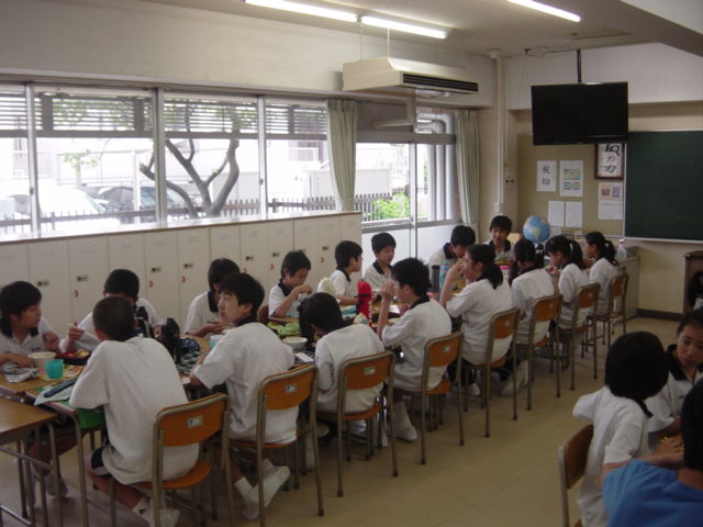 今日はその合間を縫って、学年給食を行いました。今回は友愛会の委員会ごとに班をつくり、食事を共にしました。