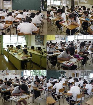今年度の第1回計算コンテストを行いました。 1~3年生が同じ問題50題を15分で解き、その得点を競います。 今回の範囲は1年生の学習進度に合わせて正負の数の計算までです。1年生にとっては初めてのコンテストですが、授業で学んだばかりの単元も含まれ、総合テストに向けて、各自の計算力を確かめる良い機会になったようです。また2・3年生は日々の授業で培った基礎計算力をよく発揮した結果となりました。