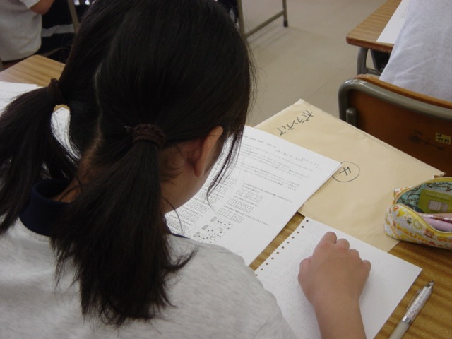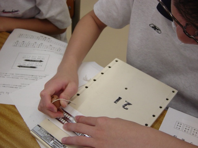今日は前々回に引き続き、点字の学習を行いました。点字盤を使って実際に点字を書くのが今日のメインの内容です。合わせて「日刊新聞点字版」を読むという活動も行っています。歴史や構成、読み方に関しては既習であったため活動としてはスムーズでしたが、点字盤を使って点字を書く際には鏡文字で書かなければいけないため、そこに難しさを感じる生徒が多かったようです。次回は学習のまとめとして、「福祉」に関して意見交換をする予定です。