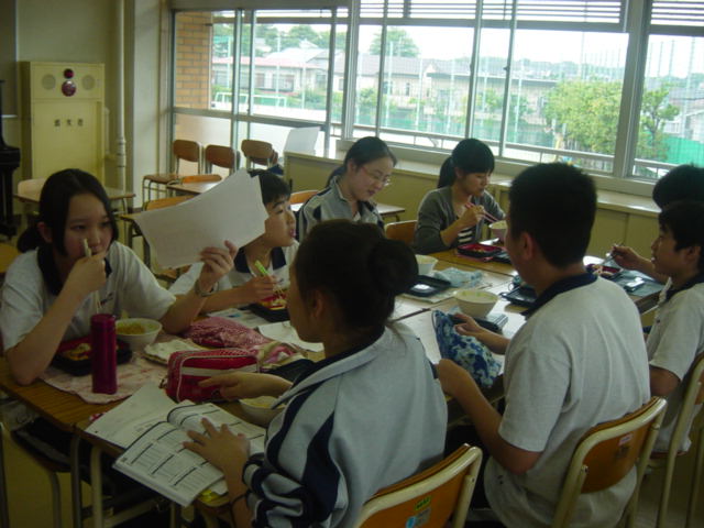 学習班で給食を食べています。3回目となった今回は班全員でルート確認などを行うことができました。どの班も行く場所やルートが決まってきて、最近はどの交通機関を使って、どれくらいの時間がかかるのかなど、より詳しい話合いも行われています。また学習班の担当の先生も発表になり班員のみんなもより一層、京都・奈良が楽しみになったようです。各班の交流が更に深められました。