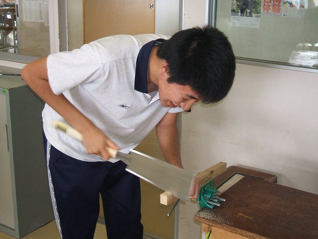 本日の実習(木工)はサイコロ作りです。木を正方形に切断して紙ヤスリで表面を研きます。のこぎりを曳く手つきも良くなり、道具の使い方も上達してきました。