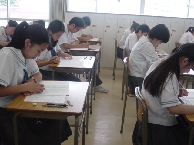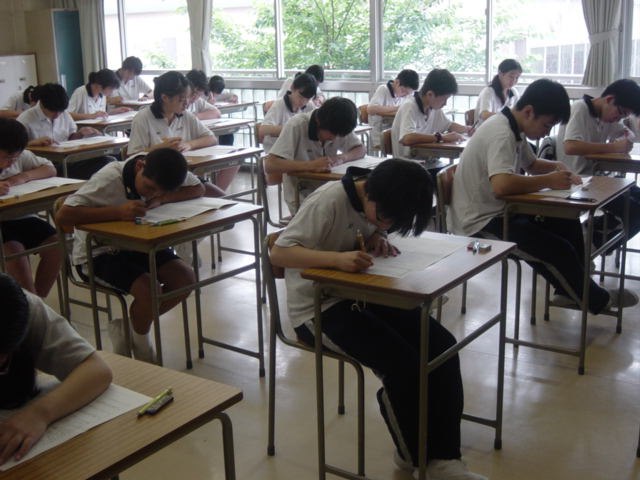 今日は総合テストの1日目です。1学期のまとめのテストとして、前回の中間テストの反省をふまえた取り組みを今日まで続けてきました。AB組は国語・理科・英語、CDE組は国語・英語のテストに挑みましたが、皆真剣に学習の成果を答案用紙にぶつけることが出来たようです。もう一日、気を緩めずに最後までがんばってほしいと思います。