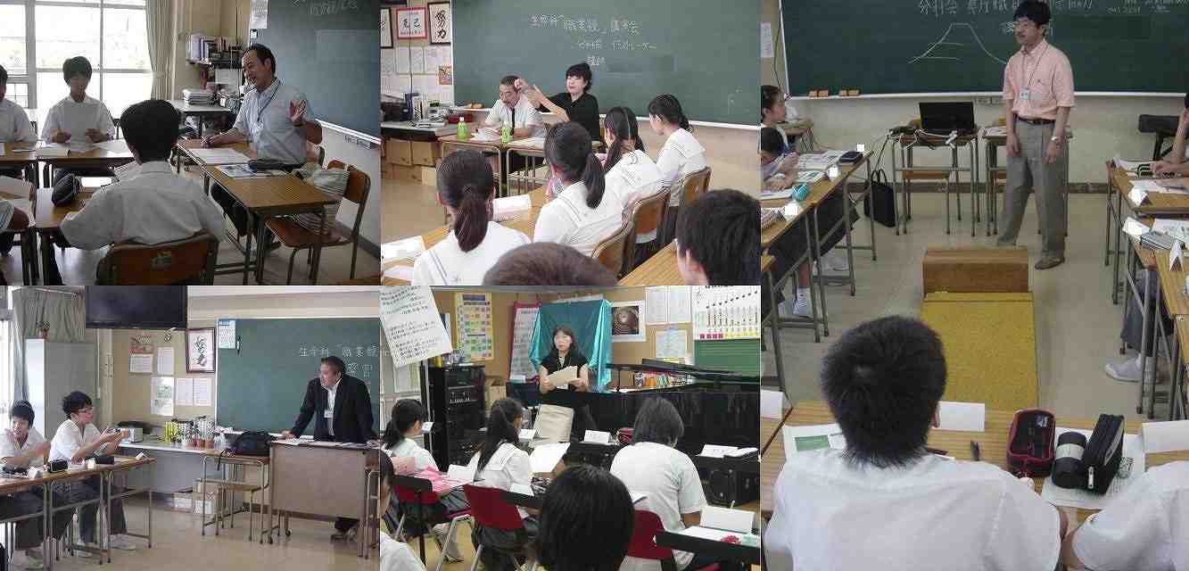 生命科の単元「将来観」の学習の一環として、保護者の方々を講師に迎えての「職業観についての講演会」が土曜講座の中で行われました。ABクラスの生徒が、聞いてみたい職業について、学年を越えてそれぞれの教室に集い、話を聞くものです。森林保全、運輸、製造、通信、教育、複合サービス、デザイン・イラスト、警察と多種多様な職業についてその専門性や、仕事の厳しさ、やりがい等興味深い話に、ときに聞き入り、ときにメモをとり、質問するなど真剣な態度で向き合う生徒たちの姿が印象的でした。