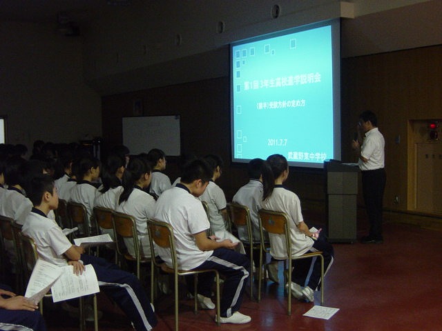 今年度3回目の模試が行われました。自己採点も行いましたので、これで現在の実力を客観的に把握でき、個別学習や夏期講習も更に充実するでしょう。終了後先日行われた保護者対象の進学説明会の内容を教頭と進路指導主任から伝えました。進学に向けての心構えや実際の入試形態などを説明され、把握すべき内容の多さに少し戸惑った様子もありましたが、皆決意を新たにしていたようでした。
