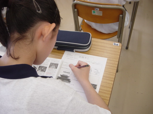 1年生では来年の9月に予定されている京都奈良校外学習の事前学習がスタートしました。第一回目のテーマは「法隆寺」。基本データについて確認した後、金堂と五重塔について更に調べます。一年後、自分が作ったファイルを京都・奈良で活用することを目標にこれからページを増やしていきます。