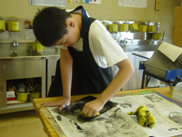 5月より取り組んでいた「ドライポイント」が完成しました。動物をモチーフにアクリル板にニードルで線を削り、インクをすり込み、刷る版画になります。手順を追って1枚ずつ丁寧に刷り、出来あがった作品は、どれも味のある線が生かされた作品となりました。