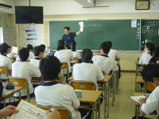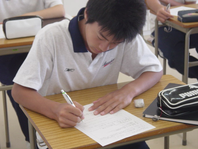 1学期の生命科を通して「過去の事実を知る」ことをテーマに、第二次世界大戦を中心として特攻隊、硫黄島の戦い、原爆、沖縄戦、ホロコーストについて学習してきました。過去の人間の過ちや悲惨な事実を知った上で、平和に向けて自分たちに出来ることを考え、実行することが次の段階です。今回はそれに加え、これまでの学習で印象に残った事について意見交換を行い、平和学習のまとめとしました。2学期からは「死生観」をテーマに生命について学んでいきます。