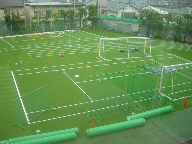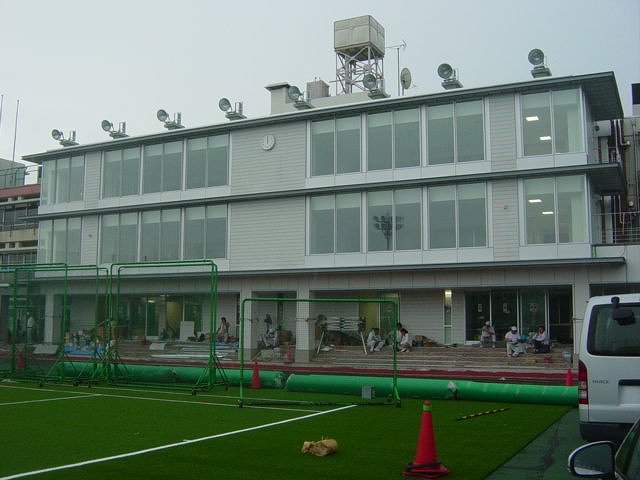 中学校の第2期改修工事がこの夏休みに集中して行われ、今は仕上げの作業に入って全体の様子が見えてきました。校舎だけでなく運動場の人工芝の貼り替えも同時に進んでいます。もうすぐ2学期、生徒たちの反応が楽しみです。