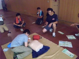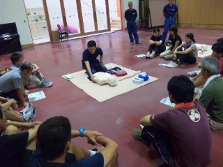 AEDは電源さえ入れれば、操作のほとんどを音声で指示してくれます。また、電気ショックが必要かどうかも自動で心電図を解析し判断してくれるため、さほど難しいものではありませんが、いざという時に使えなければ意味がありません。AEDが到着するまでの意識の確認、呼吸の確認、気道確保、心肺蘇生、観察のポイントなどについても繰り返し訓練しました。