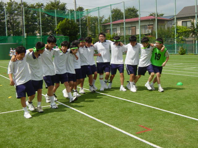 秋らしい空の下、元気にスポーツ大会練習を行っています。2日目の今日は、学年競技を本番と同じコースで通してみました。14人15脚は、横につながると迫力があります。実際に肩を組んで歩くと、速さの調節をどうするのか、声をどうかけるかなどの課題が見えてきたようで、チームで試行錯誤していました。リングリレーの方は、リングがバトン代わりのレースなので、受け渡しの協力体制もスピードアップのカギとなります。昼休みには、ペアを誘って自主練習をする様子も見られました。時間をみつけて練習に取り組み、行事を自分たちで盛り上げていくのも東ならではの良さかもしれません。