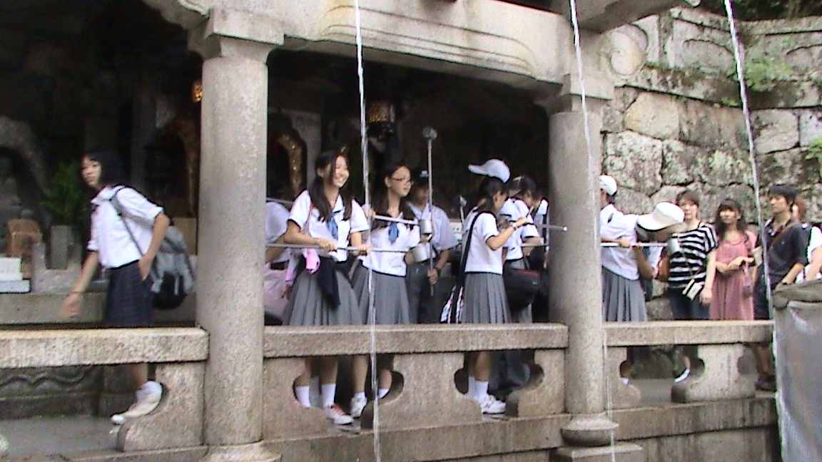 京都最終日の今日は、ほとんどの班が清水寺付近を見学していました。清水寺の舞台からは京都の街が一望でき、すごくきれいでした。清水寺の音羽の滝へ行き、3本ある滝の1本の滝の水を飲み、願い事をしました。