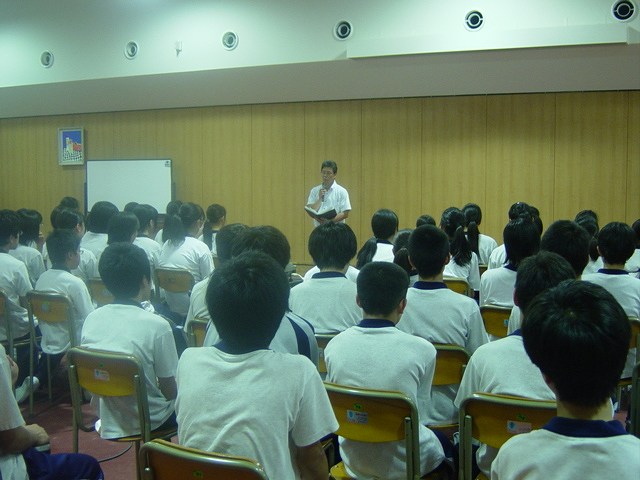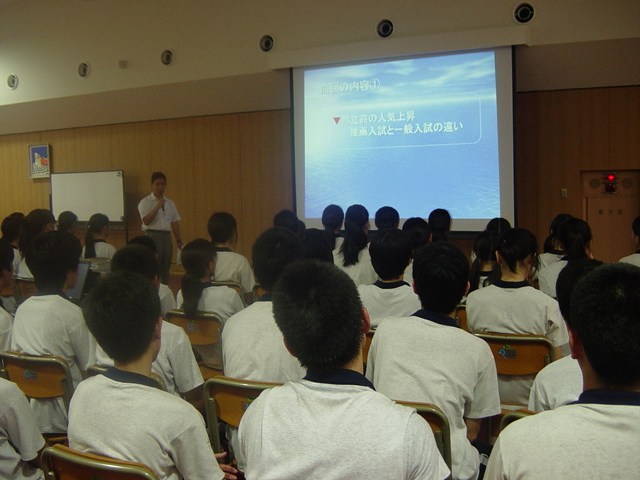 HRの時間を利用して生徒対象の進学説明がありました。先日の保護者対象説明会での内容を中心に、教頭と進路指導主任が説明を行っています。