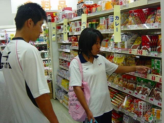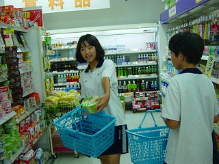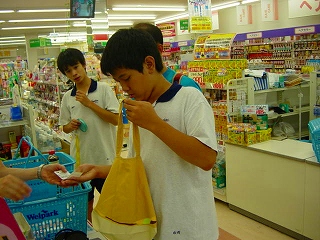 今回は近隣のドラッグストアでの買い物実習です。エコバックを用意してきた生徒は、レジで「袋はいりません」と伝えることが課題になっています。ちょっと緊張していましたが、しっかりと言うことができました。