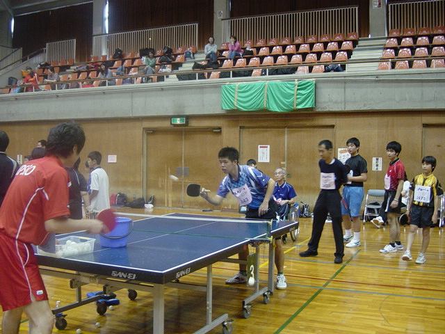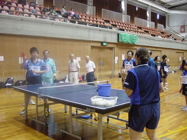 9月25日(日)、震災のため延期になっていた第17回ふれあいパークが中野区立体育館で開催されました。この会の目的は健常者と障害を持った人が卓球を通して交流することで、毎年日本を代表する選手もボランティアで多数参加してくれています。武蔵野東中学校からは9人が出場しました。車いすで競技をする人のためにゼッケンは胸につけるよう指示されたり、手話通訳が常についていたりするのを見たりして、生徒はバリアフリーに関しても良い勉強になったと思います。競技内容はコートごとにラリーの回数を競ったり、エキシビジョンマッチを見たり、サーブを2本持ってトップ選手に挑戦したりと盛りだくさんでした。生徒にとって夢のような時間だったと思います。大会関係者の方々に深く感謝いたします。