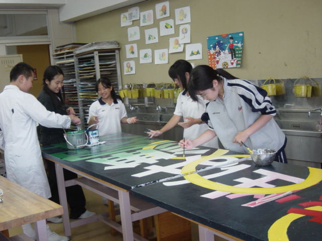 スポーツ大会にむけ、制作していたテーマ看板が完成しました。テーマの言葉を表現するために、皆でアイディアを出し素晴らしい看板になったと思います。大きなベニヤ板に描くことや、ペンキを用いての制作は、なかなかできることではないので、とても良い経験になりました。