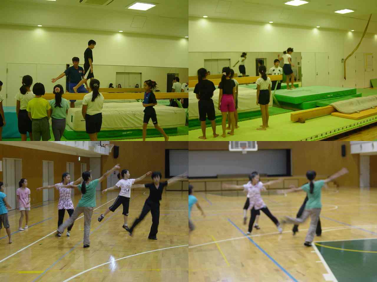 ダンス講座第5回目は、いろいろなステップ・ターン・ジャンプのバリエーションを行い、後半は作品「Winter Sun」の振りうつしを行いました。「Winter Sun」では、7月に行われた東京都大会(「Winter Sun」試技)で優勝した武蔵野東中学校ダンス部の演技をDVDで鑑賞し、いいイメージを持って振りうつしに入ったためか、難しいフレーズにも意欲的に取り組み、最後には曲に合わせて踊ることができました。