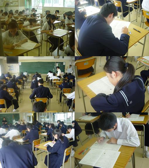 中間テストの2日目、AB組は数学と社会のテスト、CDE組は数学の確認テストが終了しました。試験中の真剣な取り組みや終了時の生徒たちの表情からは、努力の成果を答案用紙にぶつけることのできた満足感が窺えました。特に3年生は中間テストの重要性を認識し、高いレベルで取り組めていたようです。明日からのテスト返却で、自分の到達度を把握し、次のステップへ進んで欲しいと思います。