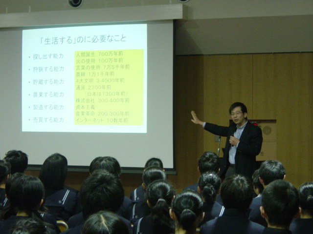「生命科」の授業の『将来観』の単元に関連して今年度2回目の講演会が土曜講座の中で行われました。今回は卒業生保護者の方に金融と経済に関する内容を講演していただきました。