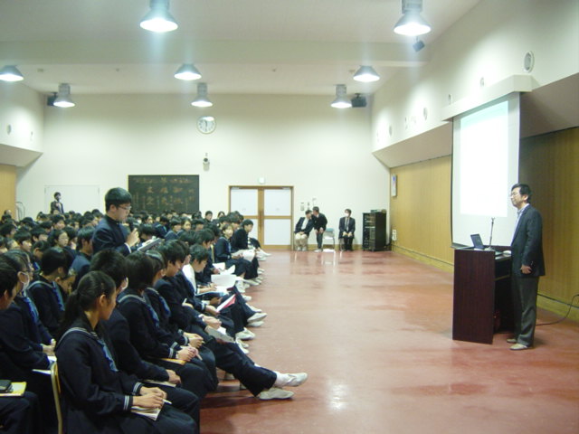 最後に、「お金についてのルールを知り、まじめに考え続ける!」というお言葉をいただき、講演が終了しました。その後の生徒からの質問の中に、こういったことをどこで学べるのでしょうか、というものがありました。「どこで学ぶ、というものではなく自分で調べ、考えていくことからしてみてください。」と回答をいただきました。今日の講演を、気になったことを調べ、考えていく機会にしていけるようにしてほしいと思います。