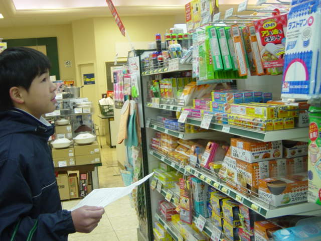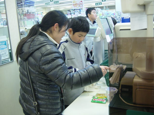 今回は近隣のスーパーマーケットでの買い物実習です。事前に各自が家庭で相談して買い物リストを作成しました。店内では品物を探した後、レジでのお金の支払い、袋詰めまでの流れを確認しています。見つからない時は店員の方に尋ねて場所を確認したり、エコバックを使用して買い物した生徒もいました。
