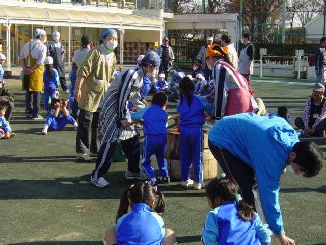 今日は、武蔵野東第一・第二幼稚園で実習を行いました。初めに園長先生から園児と関わる上での心構えについてお話を頂き、「誰かのために役立つ」ということや「あこがれの中学生」であることを胸に刻みました。その後は各担当のクラスで園児と交流し、園児の話を聞いてあげたり、絵本を読んであげたり、もちつきの補助をしたりと、頼もしい姿が見られています。また幼稚園の先生方に仕事を任され、園児にも慕われたことは生徒たちの自信にもつながり、普段の学校生活では味わえない良い経験ができました。