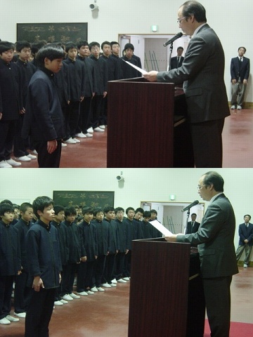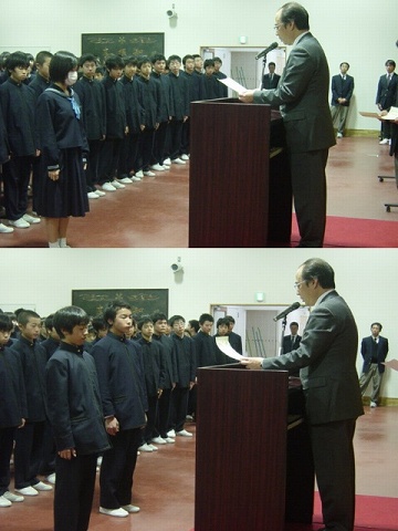 本日終業式が行なわれました。校長からは、「学校行事を見事にやり遂げ実り多い学期でした。今年一年を振り返り世界で起きた色々な出来事から何を学ぶか、何を考えていかなければいけないか。またこの冬休みには一人ひとりがやるべきことをきちんとやり、良いスタートを切って3学期を迎えましょう」と話がありました。その後表彰に移り、バスケットボール部の山崎さんが冬季私学対抗戦での活躍から優秀選手賞を受賞、サッカー部が小金井市中学生育成大会で3位、1年の井出君が宮沢湖5Kmロードレース(中学生の部)で優勝、続けて英検の表彰があり最後に校歌を歌って閉会しました。