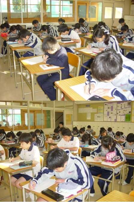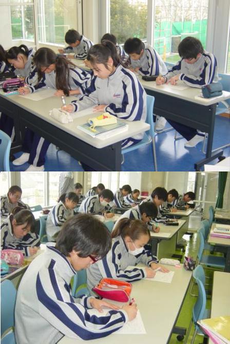 第3回スピード計算コンテストを行いました。1~3年生が同じ問題50題を15分で行い、その得点を競います。今回の範囲は1年生の進度に合わせて空間図形までとしました。