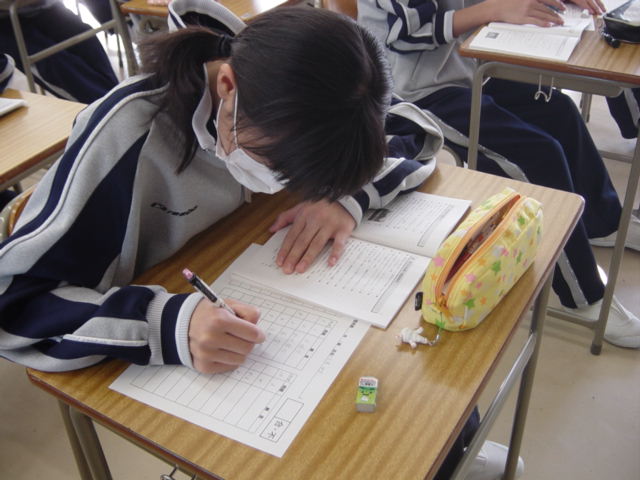 今年度最終となる第5回歴史用語検定が、社会科の授業を使って1・2学年AB組で実施されました。2年生は、最高位となる5段(約400問の中から60問が出題されます)に約3割の生徒が挑みます。一方1年生は約8割が順調に合格を重ね、今回1級を受験しました。漢字の間違えも不正解となる厳しい条件の中で、重要語句を正しく覚える習慣が自然に身についていきます。