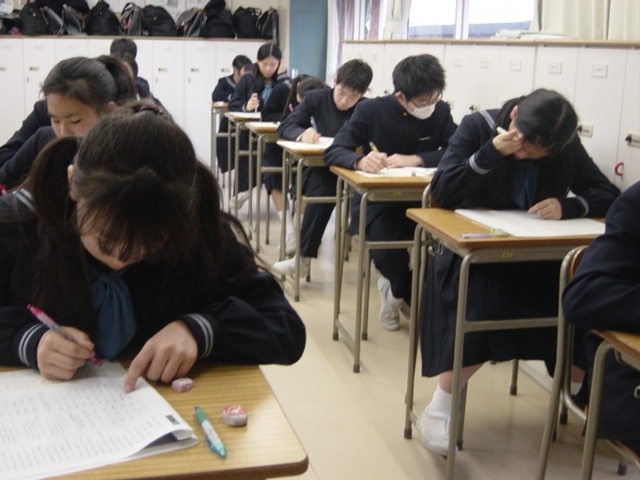 本日放課後に今年度最後となる検定が実施されました。本校では漢字検定への取り組みを推奨しており、日常の国語科の授業で行っている漢字テストも検定対応のテキストを使用して進めています。1年生で4級、2年生で3級、3年生で準2級を目標に努力を重ねてきた成果を存分に発揮したことでしょう。