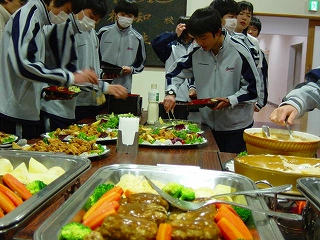 今日は、今年度最後のビュッフェランチでした。3回目と言うこともあり、食事のマナーだけではなく、準備や片付けも率先してできました。来月のスキー教室でもビュッフェスタイルの食事があるので、ぜひ生かしてほしいです。