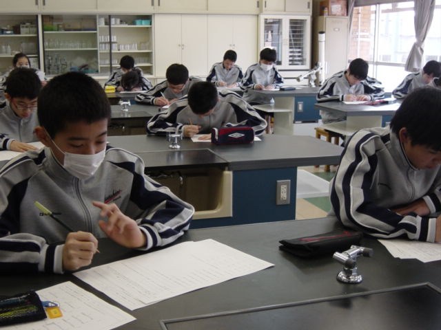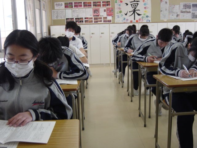 1・2年生AB組は国語・理科・英語、CDE組は国語の総合テストが行われました。今年度最後の定期テストに向けて、インフルエンザの予防に留意しながら、放課後に教科担当に質問をして疑問点の解決に努めた生徒も多く見られ、各自が自信をもって今日を迎えています。明日も頑張ってほしいと思います。