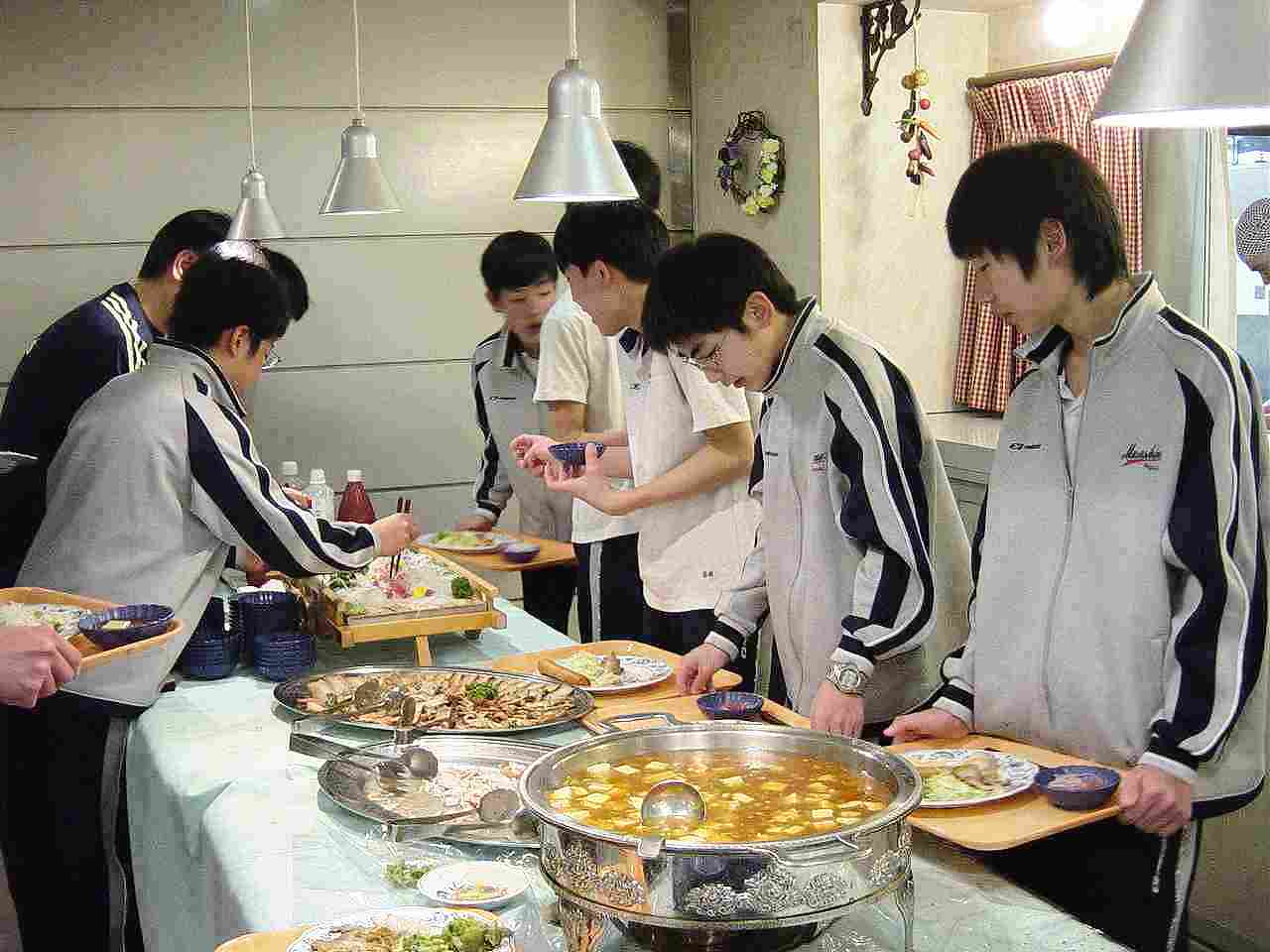 部屋では、班員全員が仲良くふざけ合ったり遊んだりで、とてもいい雰囲気です。先程食べた夕食はビュッフェスタイルで皆楽しく喋りながら味わっていました。